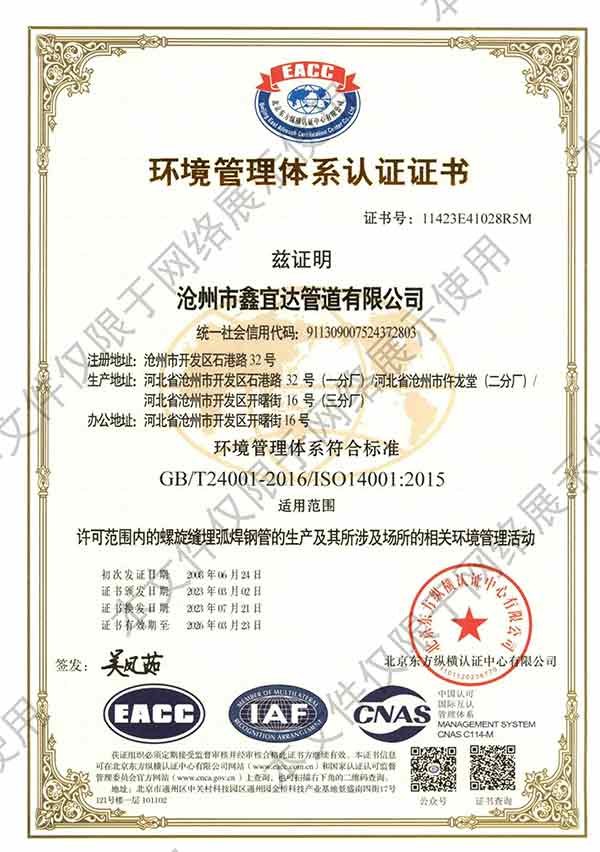 滄州市鑫宜達管道有限公司成立于2003年7月,坐落于滄州經濟開發區,占地面積40萬平方米,注冊資金1.81億元,是集螺旋鋼管生產、防腐加工以及無縫鋼管、卷板、帶鋼等品類鋼材經營銷售于一體的工貿型企業。公司現有員工400多人,其中,中高級技術職稱的人員達120余名。 滄州市鑫宜達管道有限公司擁有9條螺旋鋼管生產線和3PE防腐生產線,可生產直徑219--3640mm,壁厚5.5--28mm,最高鋼級X100的各種規格防腐螺旋鋼管...